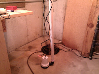 One of the big reasons I stayed home for Christmas finally happened this morning. The sump pump hose outside froze shut and when I woke up this morning the pump was running continuously. It has happened a few times before when we have really wet weather followed by a few days of really cold weather. It takes a few days for the excess ground water to dissipate.